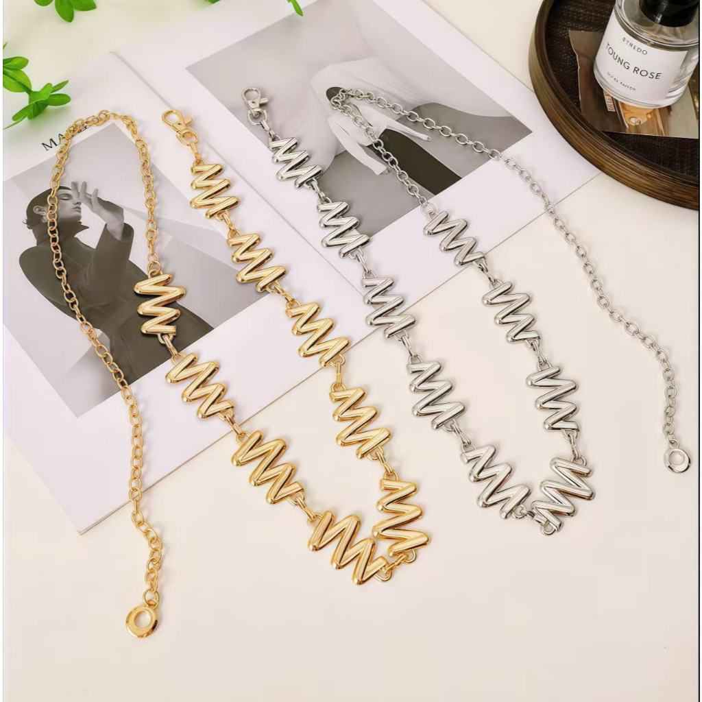 Cinto Metalico Estilo Cyberpunk | Design Geometrico com Detalhes Relampago para Mulheres