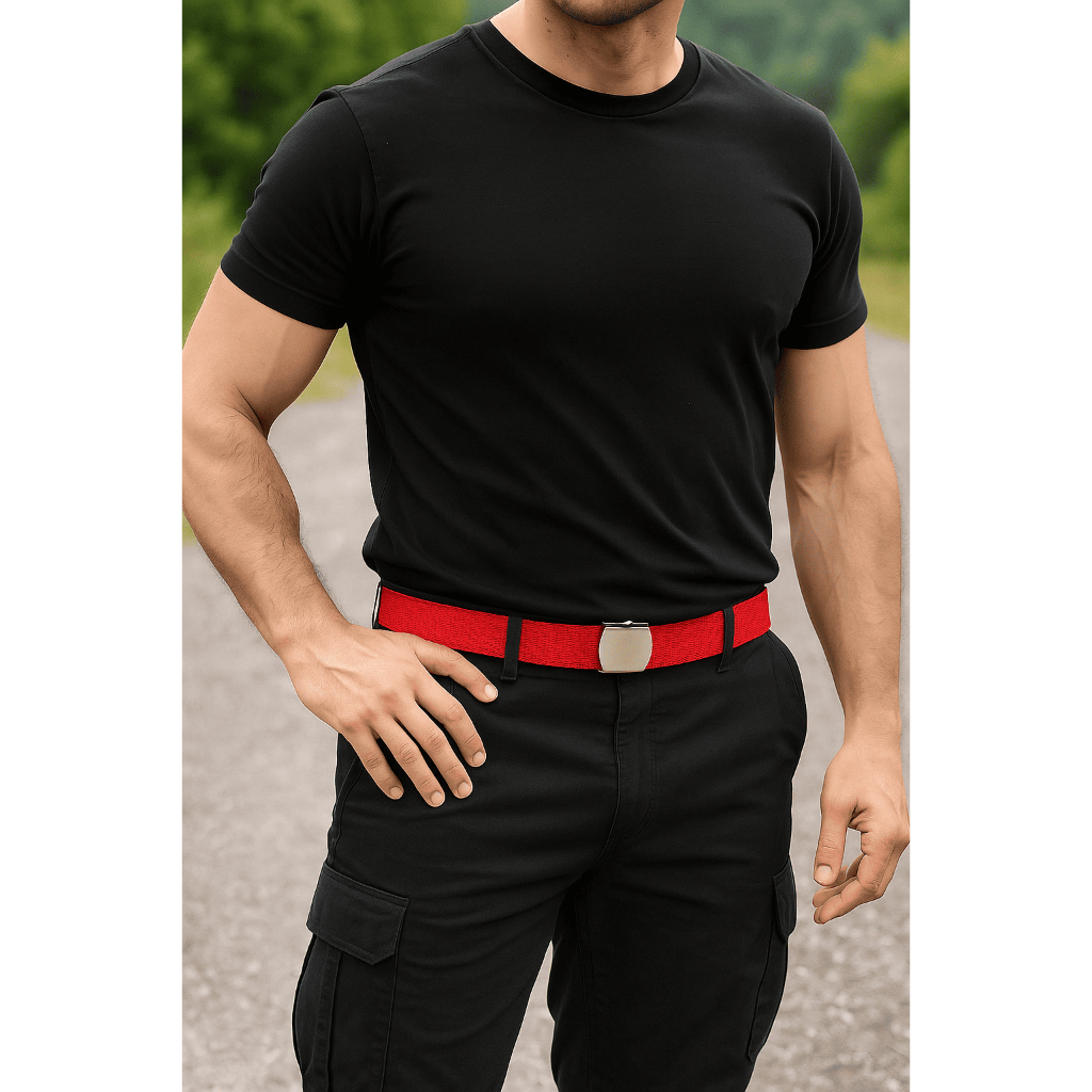 Cinto Militar Vermelho MSM BELTS Nylon Ajustável Fivela MetálicaTamanho P a Plus Masculino Feminino