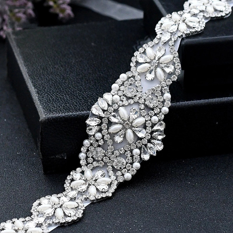 Material: Fita de Cetim Material decoração: Liga de Zinco e strass de vidro Medidas decoração: 5 x 36,5cm Medidas da fita: 2 x 2,75cm Peso aproximado: 53g Cor da fita cetim: Branco