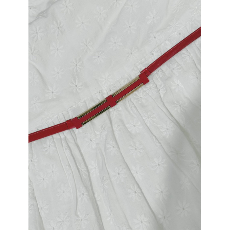 Este é um cinto longo, fino e decorativo com as seguintes características: • Design: Com acabamento metálico, seu design simples e elegante apresenta uma faixa fina que acentua sutilmente a cintura. • Estilo: Combina perfeitamente com uma saia bege clara e uma blusa de cetim branca para um look elegante para o trabalho ou para um visual casual de negócios. Também complementa vestidos, calças de cintura alta e outras peças, adicionando sofisticação e estilo. • Estilo: Unindo luxo discreto com minimalismo, este cinto é ideal para criar uma imagem profissional impecável, além de elevar o visual para o dia a dia.