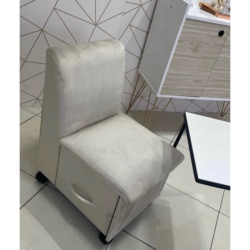 O material do tecido é em corano para que o cliente tenha facilidade com relação a limpeza, como também um tecido de alta durabilidade. A mesa do produto feito em mdf com um lindo revestimento, permitindo assim um contraste nas core. Ela tambem permite a regulagem para o conforto de quem utiliza, sendo o(a) prestador(a) de serviço, como também para o(a) cliente. A Gaveta feita toda em mdf, com um fino acabamento e finalizada com um puxador cromado, para que o produto seja tanto bonito como eficiente. Os Rodízios do produto (Rodinhas) são feitas de nylon para que utilização e adaptação em qualquer tipo de piso sem riscar. Características: - Material resistente, novo e de alta qualidade - Excelente acabamento - Decoração moderna Especificações técnicas Modelo: Premium Cor: Bege Factor Material: Corano Formato: Ciranda Dimensões:70 x 45 x 40 Peso: 13.00 Kg