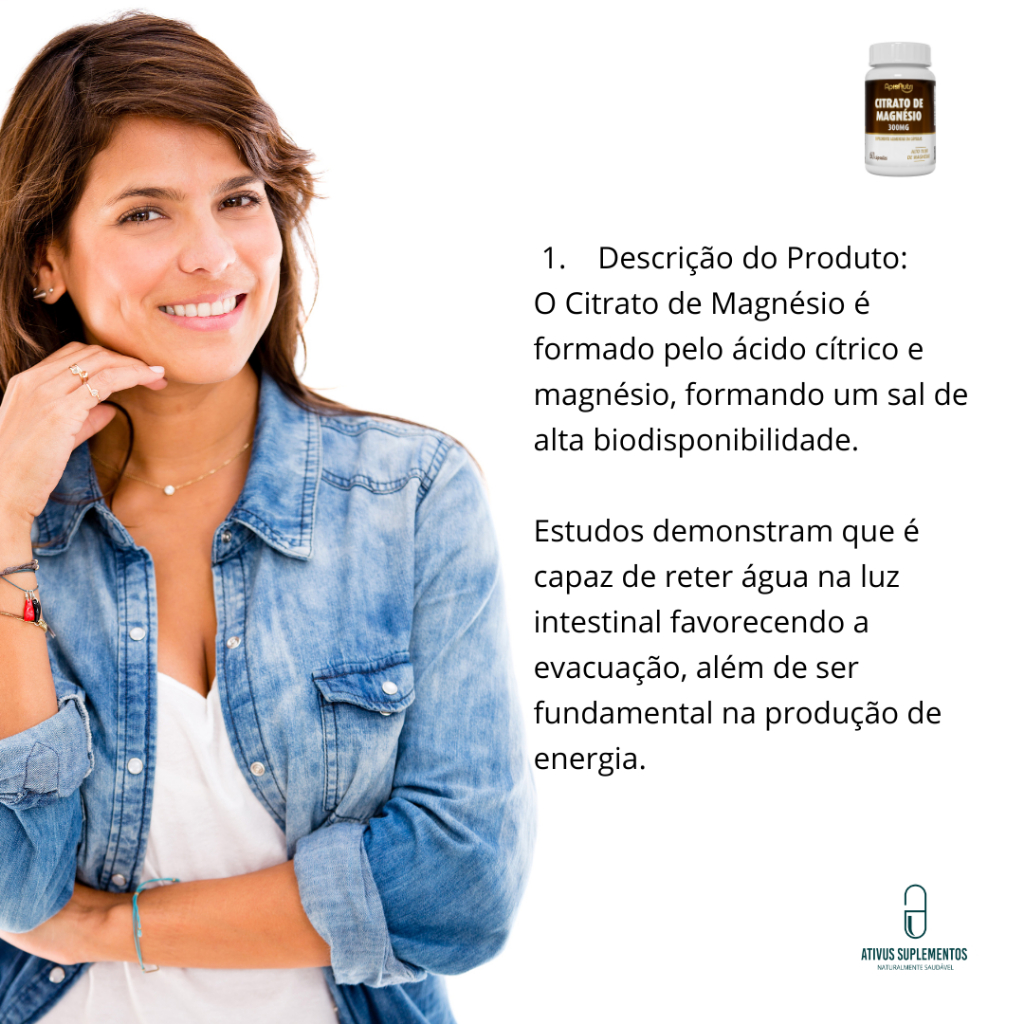 NOME E MARCA DO PRODUTO Magnésio Citrato - Apisnutri O QUE É ESTE PRODUTO? O Magnésio Citrato da Apisnutri, é um produto composto pela combinação de magnésio ácido cítrico, é facilmente solúvel em água e muito mais biodisponível e eficaz na reposição do magnésio ao nosso organismo. Estudos demonstram que o Magnésio Citrato que é mais eficiente em determinadas áreas de ação, como por exemplo, reter água na luz intestinal favorecendo a evacuação, além de ser fundamental na saúde cognitiva, nas reações metabólicas, produção de energia, dentre outras. QUAL A COMPOSIÇÃO DESTE PRODUTO? Citrato de magnésio e talco farmacêutico. Cápsula: gelatina e água deionizada. QUAL A APRESENTAÇÃO DESTE PRODUTO? Frascos com 60 cápsulas de 700mg cada. Ver tabela nutricional presente nas imagens para consultar as quantidades de nutrientes fornecidos. COMO DEVO USAR ESTE PRODUTO? Ingerir duas cápsulas ao dia, preferentemente após o café da manhã e do jantar. QUANDO NÃO USAR ESTE PRODUTO? Se você possui idade inferior a 19 anos, é gestante ou lactante esse produto somente poderá ser utilizado sob supervisão médica ou do nutricionista. COMO DEVO CONSERVAR ESTE PRODUTO? Manter a embalagem bem fechada e em local seco e fresco. Não expor a luz solar. Consumir em até 60 dias após aberto. O QUE DEVO SABER ANTES DE USAR ESTE PRODUTO? Zero Lactose Zero Açúcar NÃO CONTÉM GLÚTEN. QUAIS SÃO AS ADVERTÊNCIAS EM RELAÇÃO A ESTE PRODUTO? “Este produto não é um medicamento.” “Não exceder a recomendação diária de consumo indicada na embalagem.” “Mantenha fora do alcance de crianças.” "Gestantes e lactantes, somente devem consumir este produto sob orientação de nutricionista ou médico."