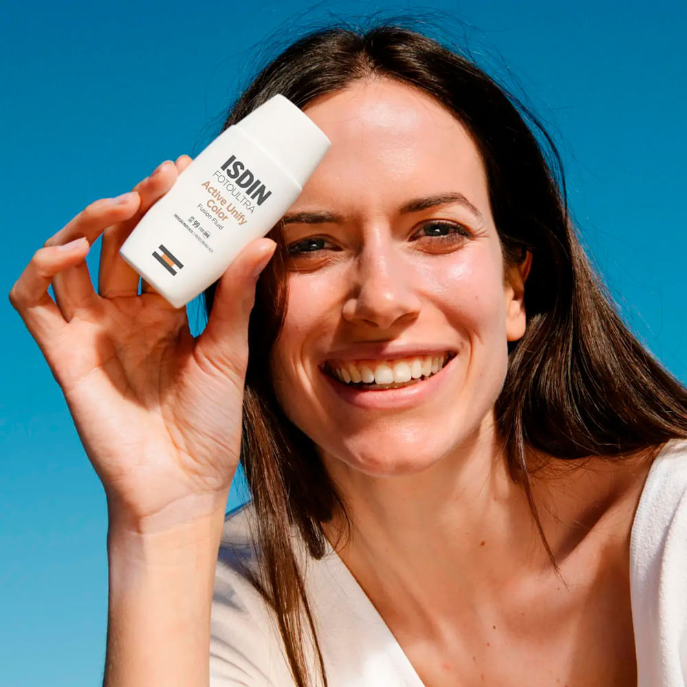 Protetor Solar Facial Foto Ultra ISDIN Active Unify Color FPS 99 - 50ml Prevenção diária da hiperpigmentação da pele. Clareia e uniformiza o tom da pele. Modo de usar:O Protetor Solar Facial Foto Ultr