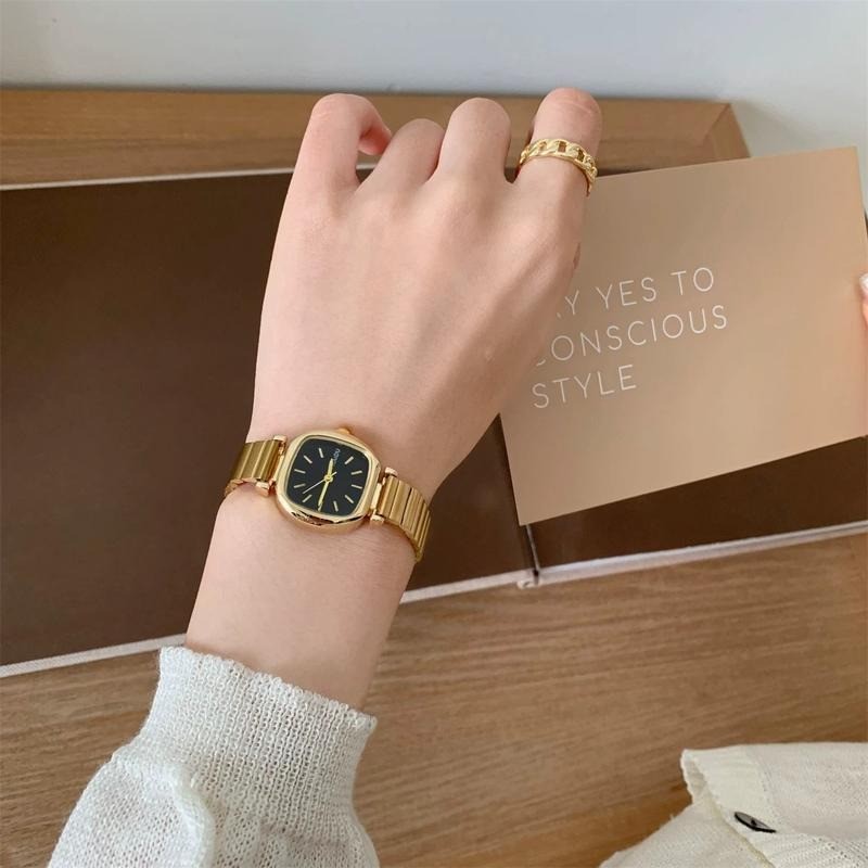 Clássico Ouro Quadrado Relógios De Quartzo Minimalista Pequeno Relógio Para Mulheres Pulseira Aço Inoxidável Ajustável F