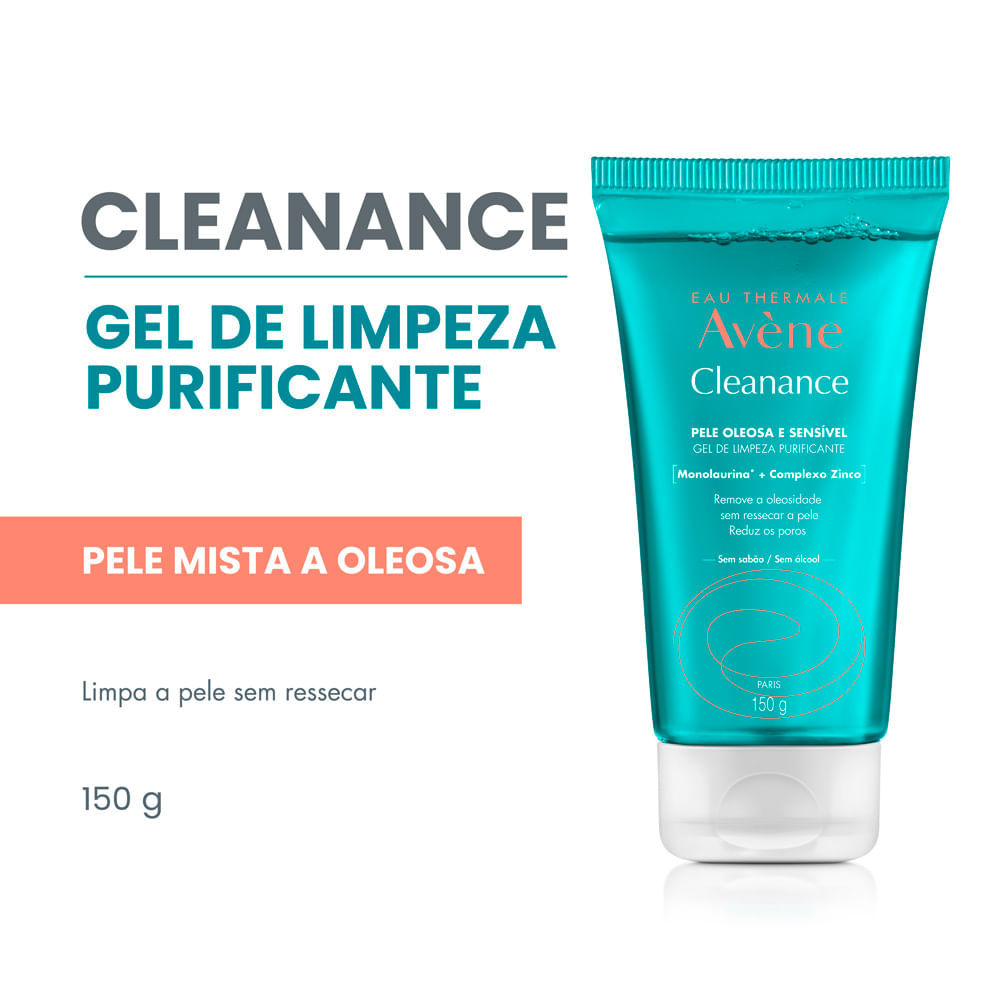 Avène Cleanance Gel de Limpeza Facial 150g Para uma pele com menos 90% da oleosidade, 85% dos poros dilatados e 82% dos cravos em 15 dias, conheça o Avène Cleanance Gel Facial de Limpeza.