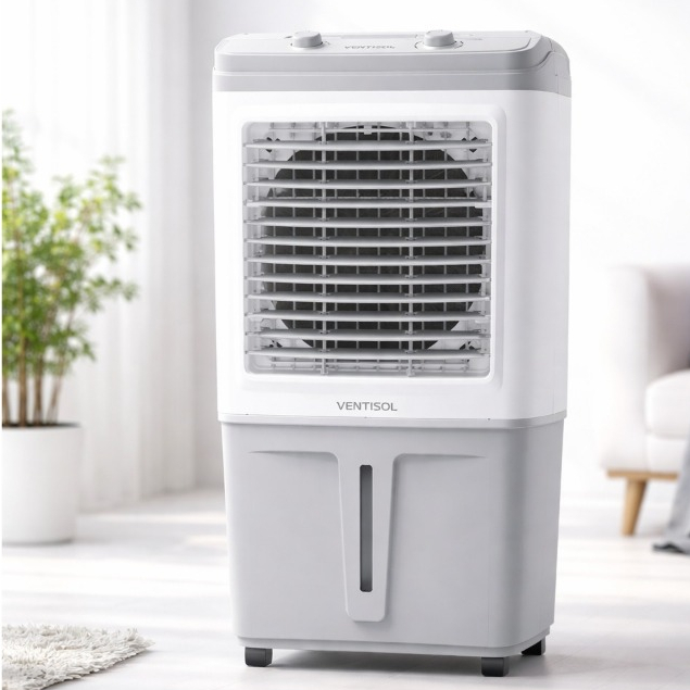 CLIMATIZADOR DE AR VENTISOL CLIN 60 PRO60 – REFRESQUE E UMIDIFIQUE O AMBIENTE Mais conforto para sua casa ou trabalho com um climatizador eficiente, com alta capacidade de água e ajustes de ventilação para o dia a dia. DESTAQUES - Reservatório de 60 litros para maior autonomia de uso - 3 níveis de ventilação para ajustar do jeito que você precisa - Sistema evaporativo tipo colmeia: ajuda a refrescar e umidificar o ar - Rodas para movimentar com facilidade, com travas nas rodas frontais CONTROLE E SEGURANÇA - Indicador frontal de nível de água - Aletas oscilantes com oscilação automática e ajuste manual - Proteção automática da bomba em caso de falta de água DIMENSÕES E PESO - Altura: 101 cm - Largura: 35,5 cm - Comprimento: 50 cm - Peso: 10,3 kg ALIMENTAÇÃO - Disponível em 110V ou 220V (escolha a voltagem correta no momento da compra) Ideal para quem busca uma solução prática para refrescar e melhorar a sensação térmica com umidificação no mesmo equipamento.