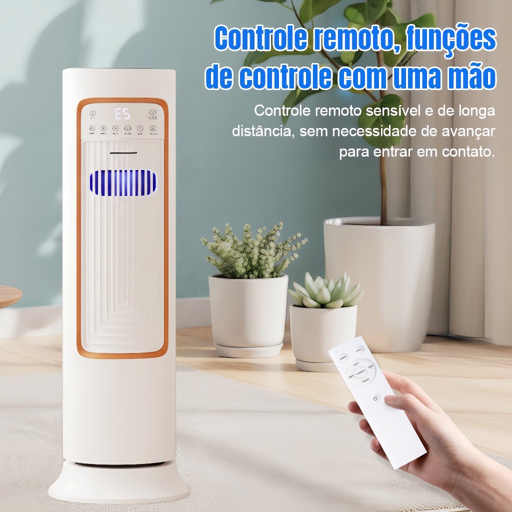 🌬️ Climatizador de Ar Quente e Frio Yesop 1800W – 4 em 1 com Display e Controle Remoto ❄️🔥 Conforto Total para Todas as Estações O climatizador Yesop 4 em 1 combina ventilador, refrigerador, aquecedor e umidificador, oferecendo controle climático completo durante todo o ano. Com 3 velocidades de ventilação e 2 modos de aquecimento, adapta-se facilmente às mudanças de estação e às suas necessidades diárias. 🌪️ Oscilação Ampla de 120° – Resfriamento Rápido A tecnologia de fluxo de ar com oscilação de 120° garante distribuição uniforme do ar, sem pontos cegos. As 2 bolsas de gelo aumentam a eficiência do resfriamento, proporcionando sensação de frescor em poucos minutos e cobrindo ambientes de até 37 m². 🔥 Aquecimento Instantâneo com Tecnologia PTC Equipado com aquecimento cerâmico PTC de 1800W, aquece o ambiente em apenas 2 segundos. O túnel de ar vertical de 81 cm, aliado à oscilação ampla, cria uma circulação de calor 3D, ideal para os dias frios de inverno. 💧 Umidificação Contínua por Até 12 Horas Conta com reservatório de água de 3 litros, oferecendo até 12 horas de névoa contínua, ajudando a combater o ar seco causado por ar-condicionado ou aquecedores. Ideal para manter o ambiente mais saudável e confortável. 😴 Silencioso e Seguro para Dormir Funcionamento ultra silencioso abaixo de 25 dB, perfeito para uso noturno. Possui timer programável de até 12 horas e dupla proteção de segurança: desligamento automático em caso de tombamento e proteção contra superaquecimento. 🎛️ Controle Fácil e Intuitivo Utilize pelo painel touch com display LED ou pelo controle remoto, garantindo praticidade total, seja no sofá, na cama ou no escritório. Ideal para quartos, salas, cozinhas, escritórios e ambientes comerciais. 📋 Informações Técnicas Tipo de uso: Residencial / Escritório Indicado para: Casas, empresas, escolas, comércios Voltagem: 110V (127V) ou 220V Potência: 1800W Frequência: 60 Hz Funções: 4 em 1 – Ventila, Resfria, Aquece e Umidifica Climatização: Quente / Frio Capacidade do tanque: 3 Litros Abastecimento: Manual Velocidades: 3 (Ventilador) / 2 (Aquecedor) Fluxo de ar máximo: 5,15 m/s Área recomendada: até 30 m² Filtro: Tipo colmeia Painel de controle: Touch + Controle remoto Timer: Sim Aletas móveis: Sim