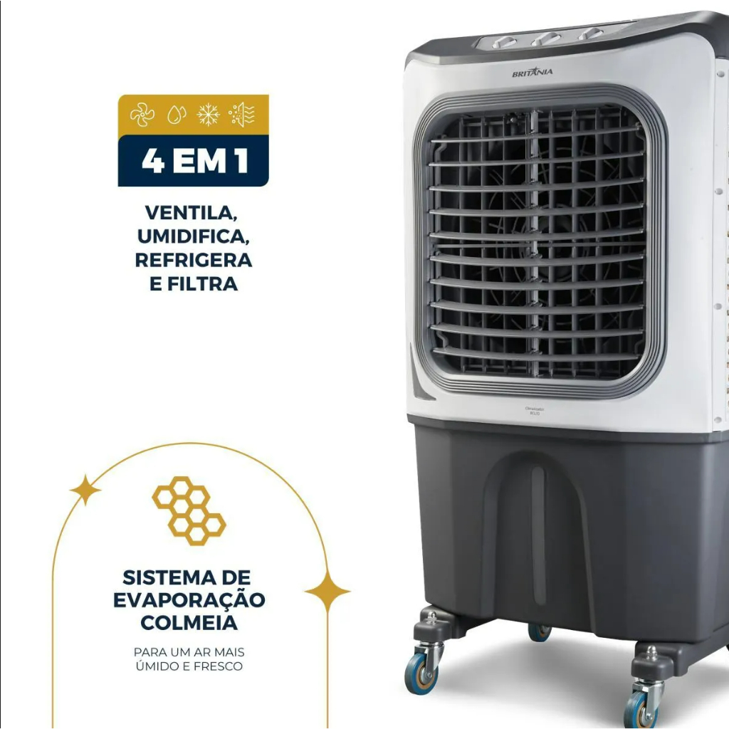 Climatizador de Ar Britânia BCL70 PRO, 70 Litros, Motor 250W Muito Potente 4 em 1 Resistente Grande