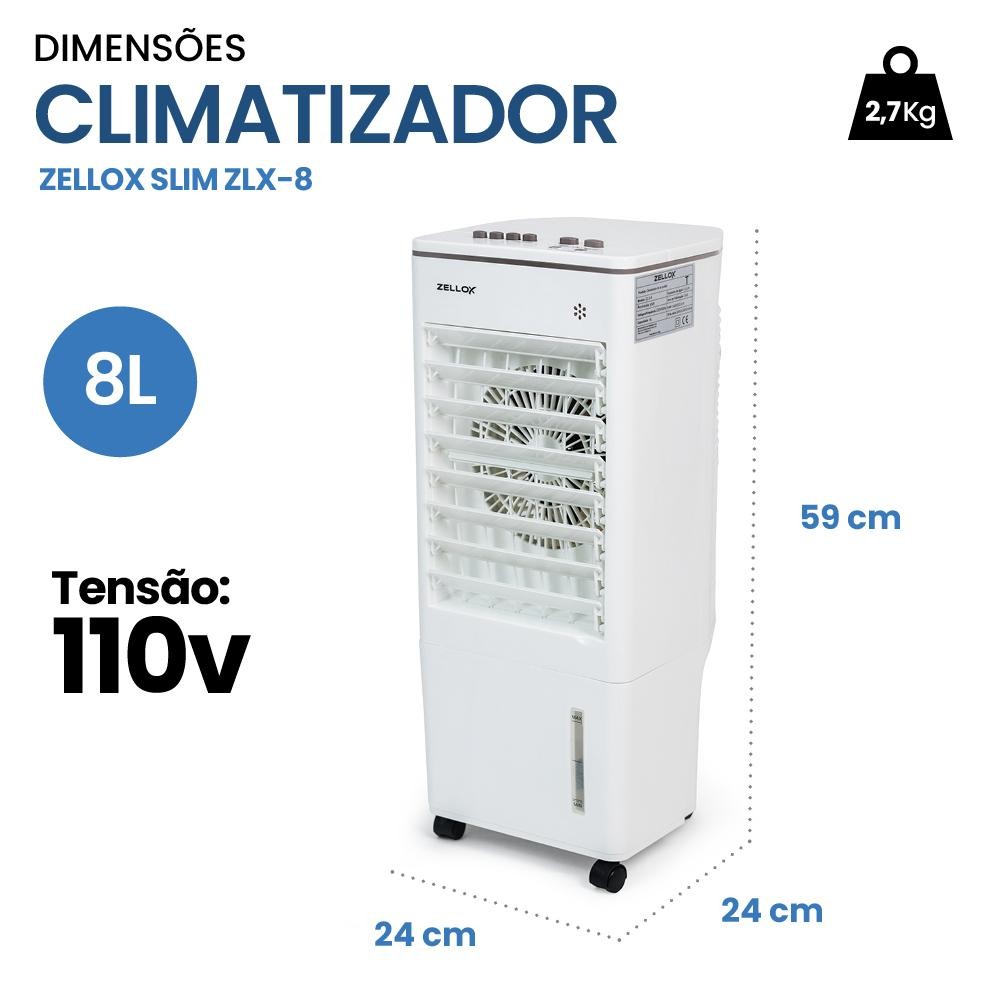 Climatizador de Ar Frio Portátil Umidificador Zellox Slim ZLX-8 4 em 1 110V