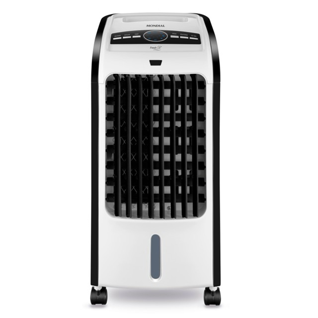Produto: Climatizador de ar portátil 4 funções com controle remoto Fresh Air - CL-03 - Mondial Marca: Mondial Descrição: O Climatizador de ar portátil 4 funções com controle remoto Fresh Air - CL-03 da Mondial proporciona ar fresco e um ambiente confortável para sua família. Com 4 funções, o climatizador resfria, umidifica, filtra e ventila. Conta com 3 velocidades de ventilação, além das funções resfriar e oscilar. Possui função Timer que possibilita programar o tempo de funcionamento e oscilação das aletas, que assegura uma distribuição uniforme de ar na casa. Saiba mais sobre o CL-03 da Mondial: - 4 EM 1: O climatizador Mondial resfria, umidifica, filtra e ventila o ambiente, garantindo um cômodo fresco e confortável. - NÍVEIS DE VENTILAÇÃO: Possui 3 velocidades de ventilação, além das funções resfriar e oscilar. Escolha de acordo com a sua necessidade! - FUNÇÃO TIMER: Com o Timer, você pode programar o tempo de funcionamento de até 7h30. - OSCILAÇÃO DAS ALETAS: Assegura distribuição uniforme de ar no ambiente. - COMFORT FILTER SYSTEM: Proporciona um ar mais puro e livre de bactérias. - PAINEL DIGITAL: Facilita a escolha das funções com apenas um toque. - CAPACIDADE DO RESERVATÓRIO: Possui 3,2 litros de capacidade. Além disso, conta com indicador do nível de água para uma fácil visualização do reservatório. - DESIGN PORTÁTIL: Pode ser colocado em qualquer cômodo da casa. Possui rodas para transporte, que facilita levar seu climatizador para qualquer lugar. - MAIS PRATICIDADE: Acompanha controle remoto para o acionamento a distância, e dois recipientes com gel, que garantem um resfriamento ainda mais eficiente em dias quentes. - UM ANO DE GARANTIA MONDIAL: A Mondial é a escolha de milhões de consumidores. Mondial, a escolha inteligente! Especificações: Cor: Branco/Preto Potência: 80W Autonomia: 7h30 Ciclo: Climatiza, ventila, filtra e umidifica Capacidade do reservatório: 3,2L Consumo de energia: 0,080Kw/h Reservatório de gelo para resfriamento da água: Sim Função umidificar: Sim Função oscilar: Sim Timer programável: Sim Tipo do filtro: - Controle remoto: Sim Oscilante: Sim Comprimento do cabo: 1,50m. Dimensões (C x L x A): 24.00 x 26.00 x 59.50 centímetros Peso: 4.20 Kg