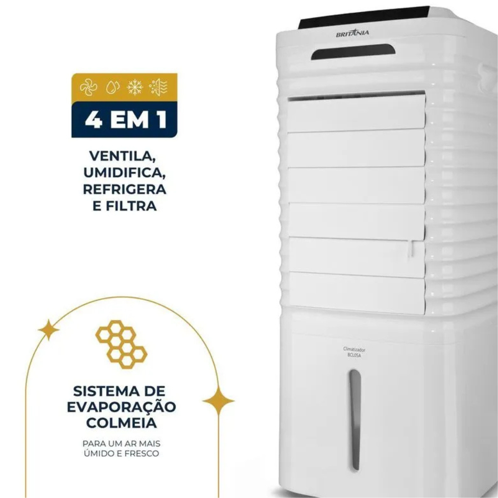 Climatizador de Ar Portátil Britânia BCL05A 5 Litros 4 em 1 Branco 110V Com Controle Remoto