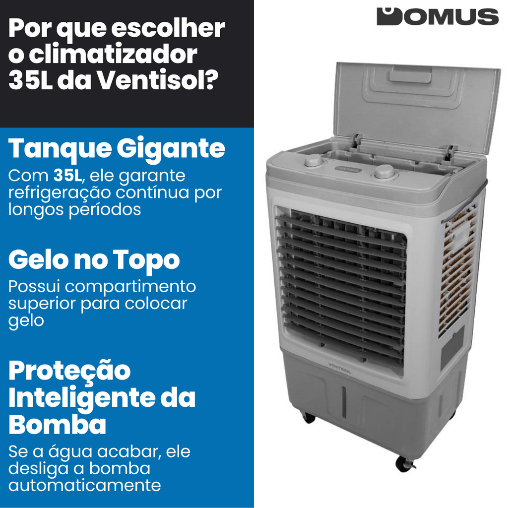 Climatizador de Ar Potente 35 Litros CLIN35PRO 150W Branco Cinza Ventisol