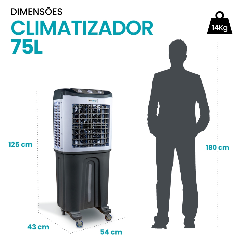 Climatizador Portátil Industrial Silencioso Moob Ultra Ar 75L 150W 220V 3 Velocidades Evaporativo