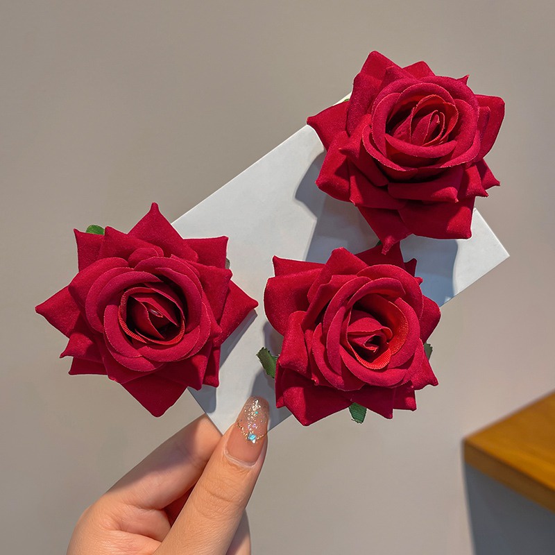 Clipes De Flor De Rosa Vermelha Vintage Cabelo Acessórios De Moda Para Meninas Doces