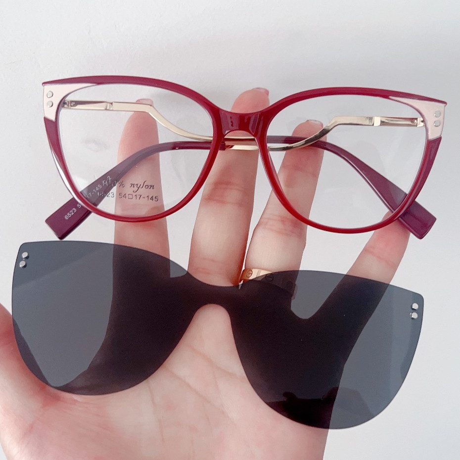 Clipon feminino 2 em 1 óculos de sol armação de grau 6523