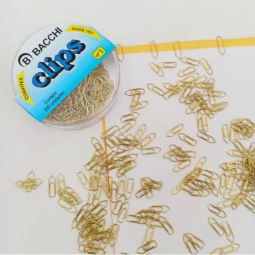 Ideal para organizar papéis, documentos e materiais escolares de forma prática e divertida; Embalagem contém 200 clips; Produto fabricado com arame de aço revestido Dimensão do clips: 13 mm; Indicado para quem busca a organização e não dispensa um design divertido; Disponível na cor dourada e colorida (sortida); Demais produtos que compõe as fotos não acompanham os Clips. VARIAÇÕES 1 Pacote Colorido (200 clips) 1 Pacote Dourado (200 clips) Kit 1 Pacote Clips Colorido (200 Clips) + 1 Pacote Clips Dourado (200 Clips)