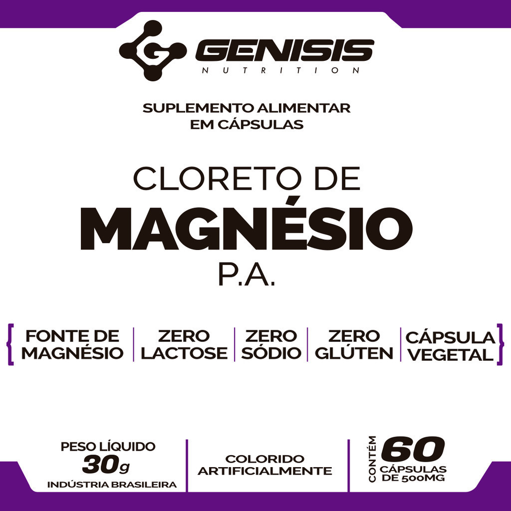 Cloreto de Magnésio PA 100% Puro 60 Cápsulas Genisis Nutrition Cápsulas Vegetais Suplemento