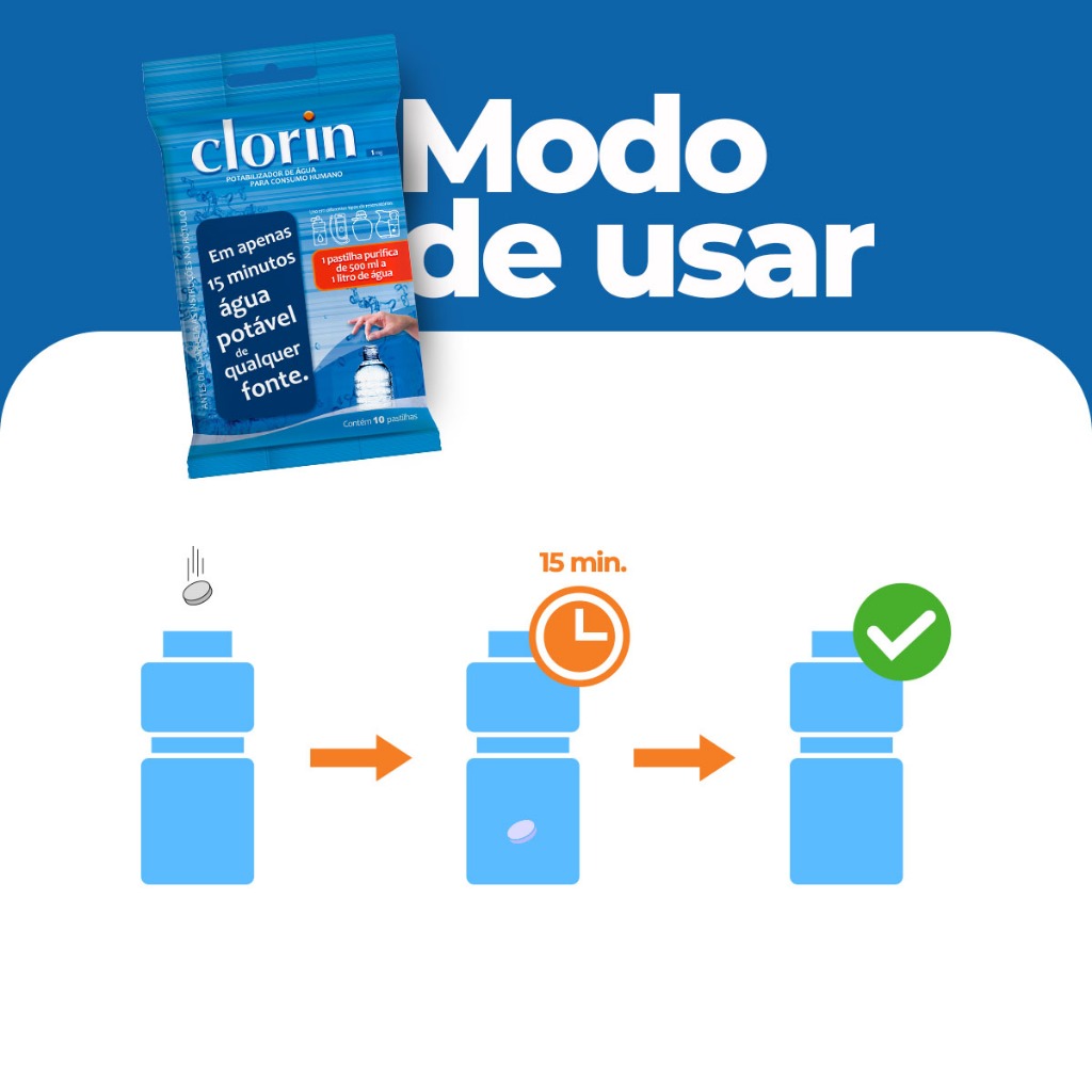 Clorin 1 | Pastilhas Purificadoras de Água – 10un | Camping, Viagens e Emergências