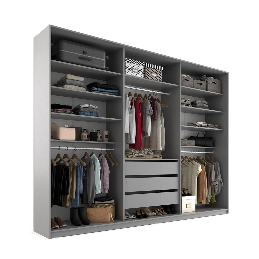 Closet Casal 100% Mdf Bp 237cm 3 Gavetas Monreale Cinza
