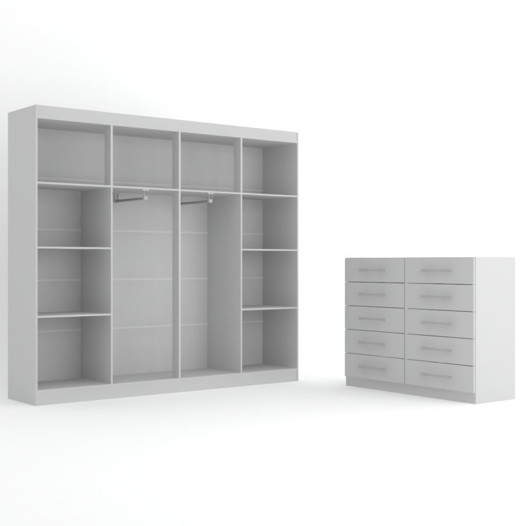 Closet Casal Ele e Ela 8 Prateleiras e Cômoda 10 Gavetas