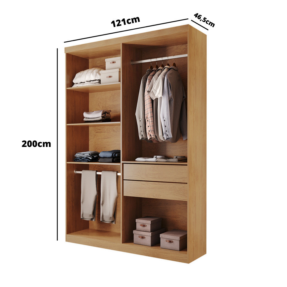 Closet Solteiro Hera 2 Gavetas 4 Prateleiras MDF Rufato