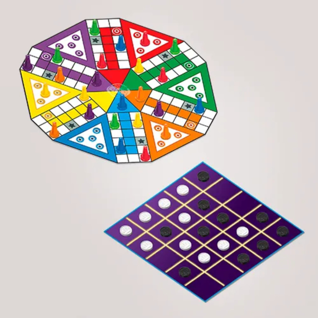 12 Jogos em 1 são eles: Damas, Trilha, Ludo, Resta 1, Conecta 4, Cobras e Escadas, Dominó, Gamão, Batalha Naval, Jogo da Velha, Velha 5x5 e Ludo 6! Diversão ilimitada para a Família! Os jogos clássicos que reúne gerações. As crianças podem desfrutar horas de diversão estratégica. Estimule o pensamento lógico e a interação enquanto todos se divertem juntos. Adquira agora e crie memórias preciosas com os jogos que unem toda a família! Informações adicionais: INMETRO: 004 209/2018