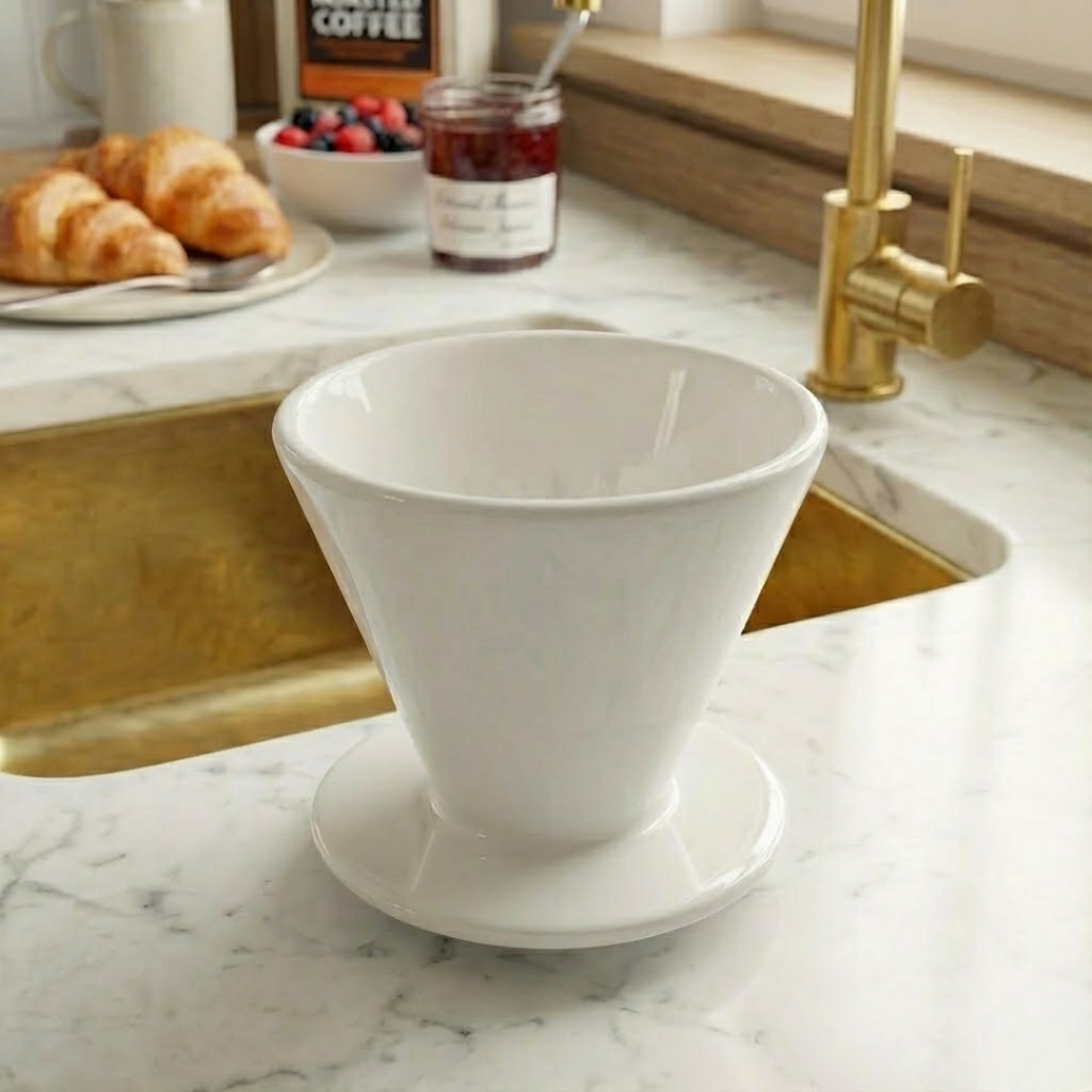 Prepare seu café coado fresquinho na medida certa com este suporte clássico de porcelana. Ideal para quem aprecia o ritual de passar um café de qualidade, ele se adapta perfeitamente sobre canecas ou pequenas garrafas térmicas. Por que escolher um coador de porcelana? Sabor Puro: A porcelana é um material higiênico que não libera resíduos e não altera o sabor original do seu café. Temperatura Ideal: Retém o calor da água por mais tempo durante a filtragem, garantindo uma extração mais eficiente e um café mais quente. Fácil Limpeza: Superfície lisa que facilita a lavagem e não pega cheiro.
