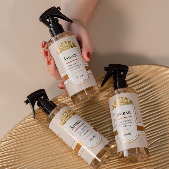 COALA ODORIZANTE DE AMBIENTES E TECIDOS ÂMBAR 260ml Descrição O Coala Odorizante de Ambientes e Tecidos é uma opção super prática e rápida para garantir um ambiente perfumado e com sensação agradável. Finalidade Este produto foi especialmente desenvolvido para aromatizar os ambientes e tecidos da sua casa, proporcionando a agradável sensação de um ambiente perfumado. Modo de usar Aplique o produto no ambiente desejado, com rápidas pulverizadas, posicionando o jato para cima, fazendo com que suas partículas se espalhem melhor pelo ambiente. Ficha Técnica Nome do Produto: Coala Odorizante de Ambientes e Tecidos Âmbar Volume: 260 Militros Marca: Coala Essências Aromáticas Número de unidades: 1