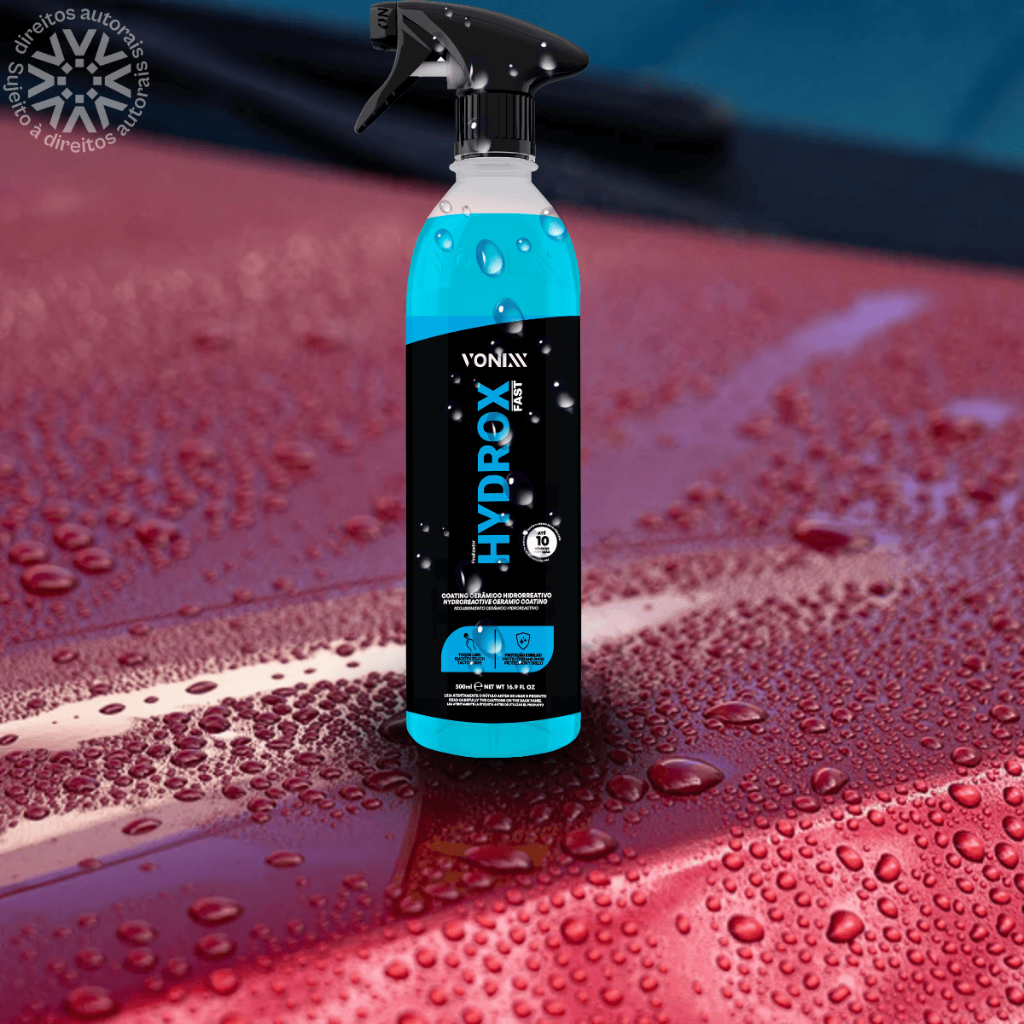 1 - HYDROX FAST 500ML VONIXX ACOMPANHADO COM PANO 40X40 HYDROX FAST é um revolucionário coating cerâmico hidrorreativo de alta tecnologia. Ele é ativado através da água, sem necessidade de toque. Proporciona uma incrível proteção de até 10 meses na pintura, deixando o toque liso, aumentando significativamente o brilho e protegendo contra a ação do tempo. Também pode ser aplicado em vidros para melhorar a hidrorrepelência. MODO DE USO: 1- Lave bem o veículo. 2- Com o carro ainda molhado, pulverize o produto sobre toda a pintura, sempre fria, sem deixar o produto secar na superfície. 3- Enxágue imediatamente utilizando uma lavadora de alta pressão para ativar o produto e observe o efeito de hidrorrepelência imediato. 4- Seque o veículo. Garantia do vendedor: 3 meses