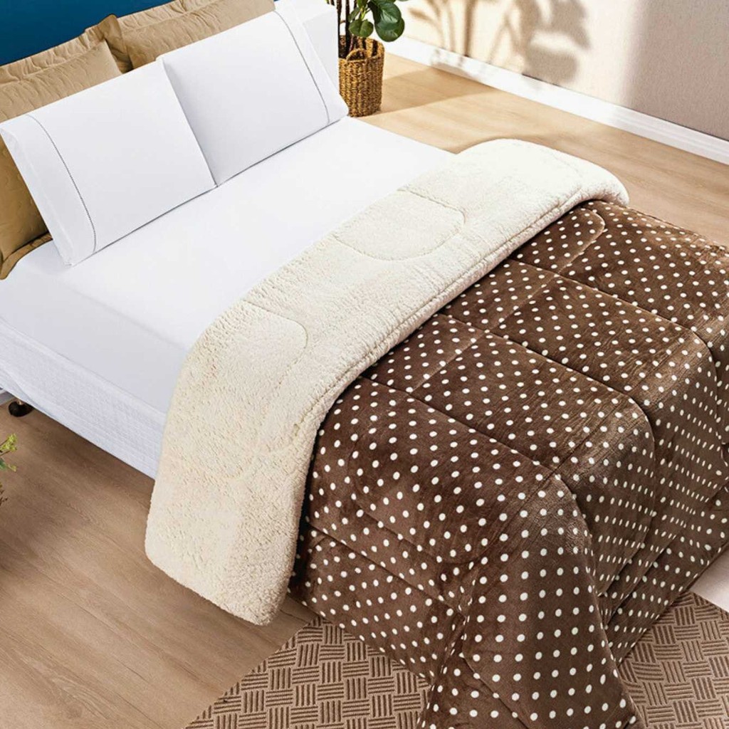 Coberdrom Sherpa Dupla Face Pele Carneiro Com Plush Cobertor Estampa Petit Poa Solteiro/Queen/King