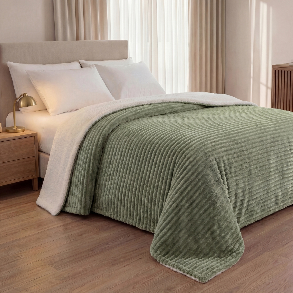 Cobertor Casal 2,20x1,80 Sherpa Canelada Aveludado Manta Lã De Carneiro