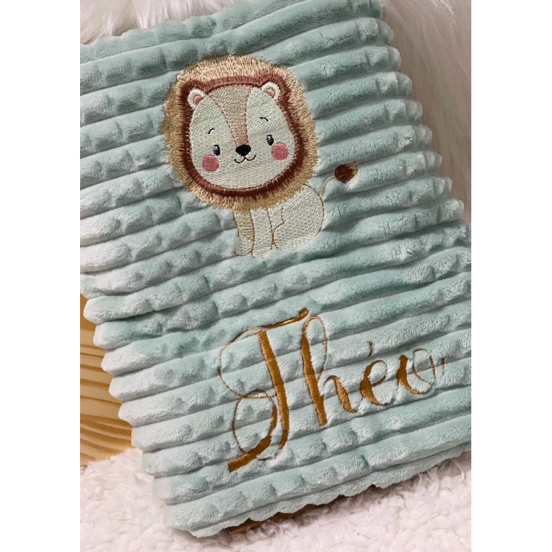 Cobertor Manta Baby Safari Verde Para Menino Com Nome Bordado