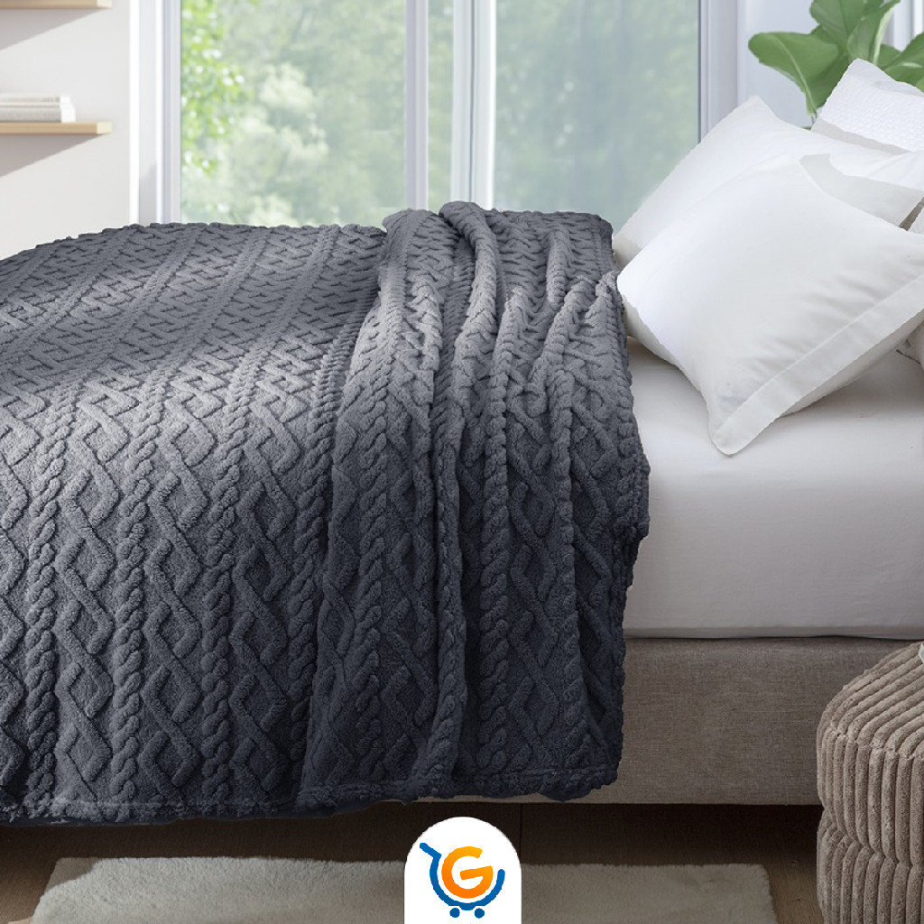 Cobertor Manta Casal Tricot Cinza Microfibra Soft Toque Macio 2,20x1,80m Jolitex Dyuri Jacquard
