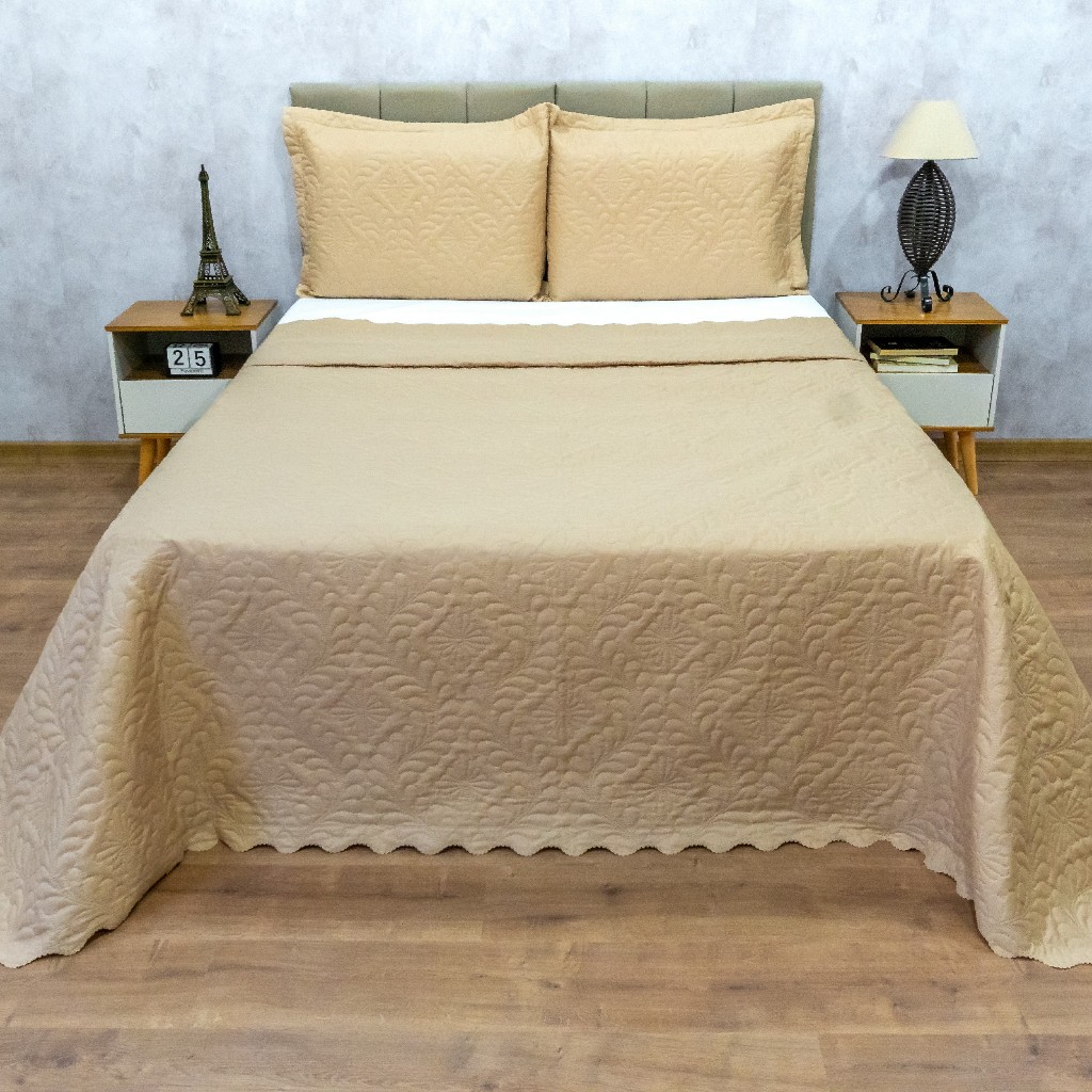 Cobre Leito Colcha Camili King 3 Pçs Matelado Ultrassônico Dupla Face
