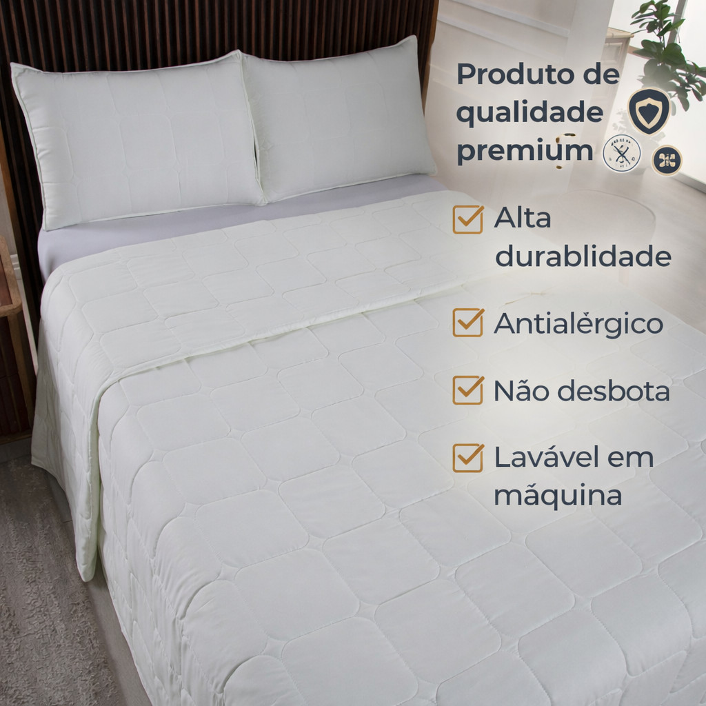 Cobre Leito Colcha Casal Percal 400 Fios 03 Peças Costurado com Porta Travesseiro Dupla Face Toque Acetinado Queen King