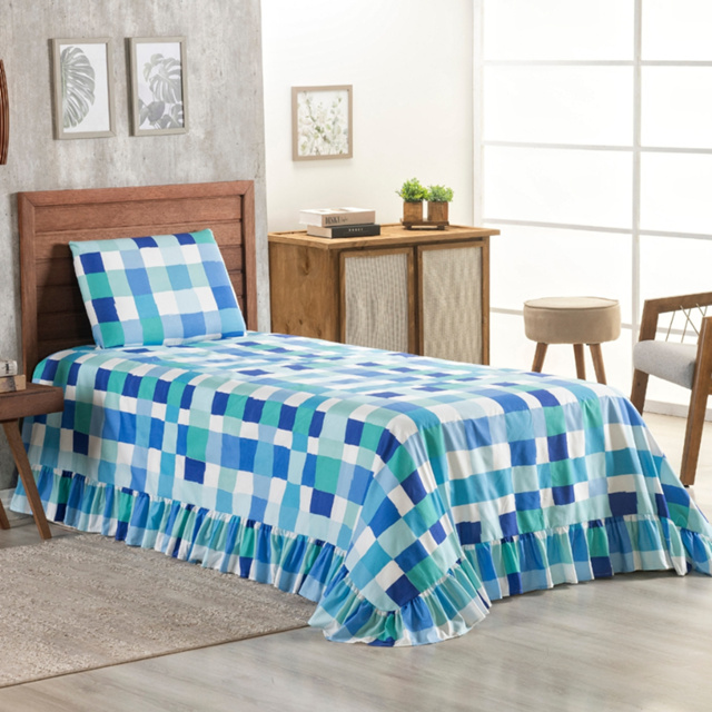 Cobre Leito Colcha Com Babado Premium Solteiro Percal 400 Fios Toque Macio 2 Peças Varios Modelos