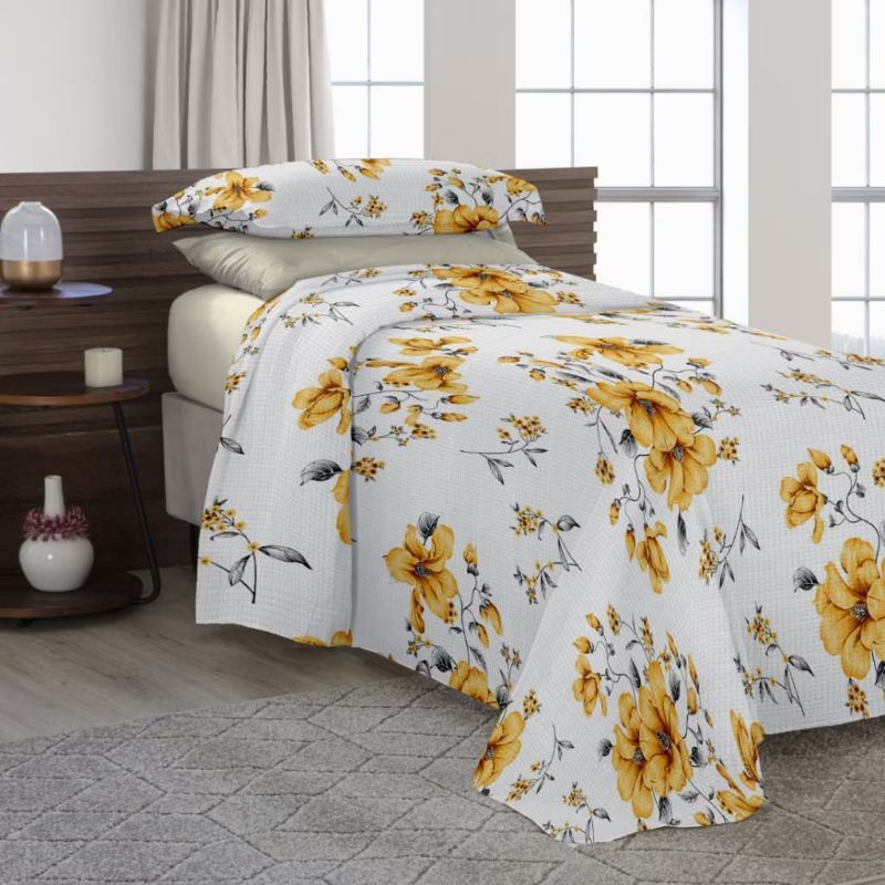 Cobre Leito Colcha Piquet Solteiro 02 Peças Tecido Algodão Estampado