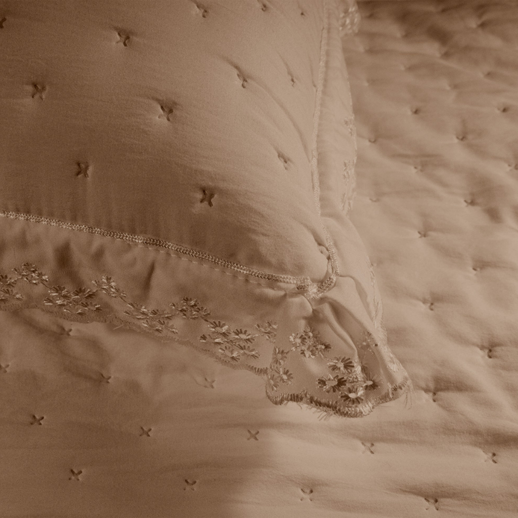 Sofisticação e conforto é o Cobre Leito Nobless. Feita em micropercal de 200 fios, ela garante uma textura suave e agradavelmente fresca ao toque. Seu acabamento matelado ultrassônico proporciona um visual elegante, enquanto os detalhes em laise bordado, da um toque de luxo, tanto no cobre leito quanto no porta travesseiro. COBRE LEITO NOBLESS CONTÉM 3 PEÇAS - CASAL PADRÃO: - 01 Cobre leito matelado ultrassônico, com laise bordada 2,40m x 2,20m - 02 Porta travesseiros matelado ultrassônico, com laise bordada 70cm x 50cm CONTÉM 3 PEÇAS - QUEEN SIZE : - 01 Cobre leito matelado ultrassônico, com laise bordada 2,60m x 2,40m - 02 Porta travesseiros matelado ultrassônico, com laise bordada 70cm x 50cm CONTÉM 3 PEÇAS - SUPER KING SIZE: - 01 Cobre leito matelado ultrassônico, com laise bordada 2,80m x 2,60m - 02 Porta travesseiros matelado ultrassônico, com laise bordada 70cm x 50cm COBRE LEITO AMELIE CONTÉM 3 PEÇAS - CASAL PADRÃO - 01 Cobre Leito Casal medindo 2,20m x 2,40m - 02 Porta-travesseiros 50cm x 70cm com aba de 5 cm CONTÉM 3 PEÇAS - QUEEN SIZE : - 01 Cobre Leito Queen medindo 2,40m x 2,60m - 02 Porta-travesseiros 50cm x 70cm com aba de 5 cm CONTÉM 3 PEÇAS - SUPER KING SIZE: - 01 Cobre Leito Super King medindo 2,80m x 3,10m - 02 Porta-travesseiros 50cm x 70cm com aba de 5 cm COMPOSIÇÃO: - Tecido superior e inferior 100% Poliéster - Enchimento: 100% Poliéster INSTRUÇÕES DE LAVAGEM: - Utilizar a máquina de lavar no clico delicado. - Não usar alvejantes. - Não misturar com peças de algodão. - Evitar uso de secadora. LaTu Magazine Da nossa família, para a sua!