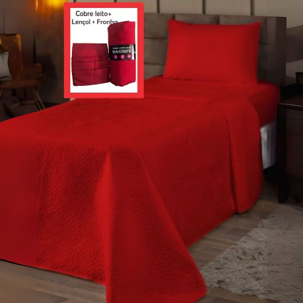 Cobre Leito + Lençol e Fronha Solteiro Liso Kit 03 Peças