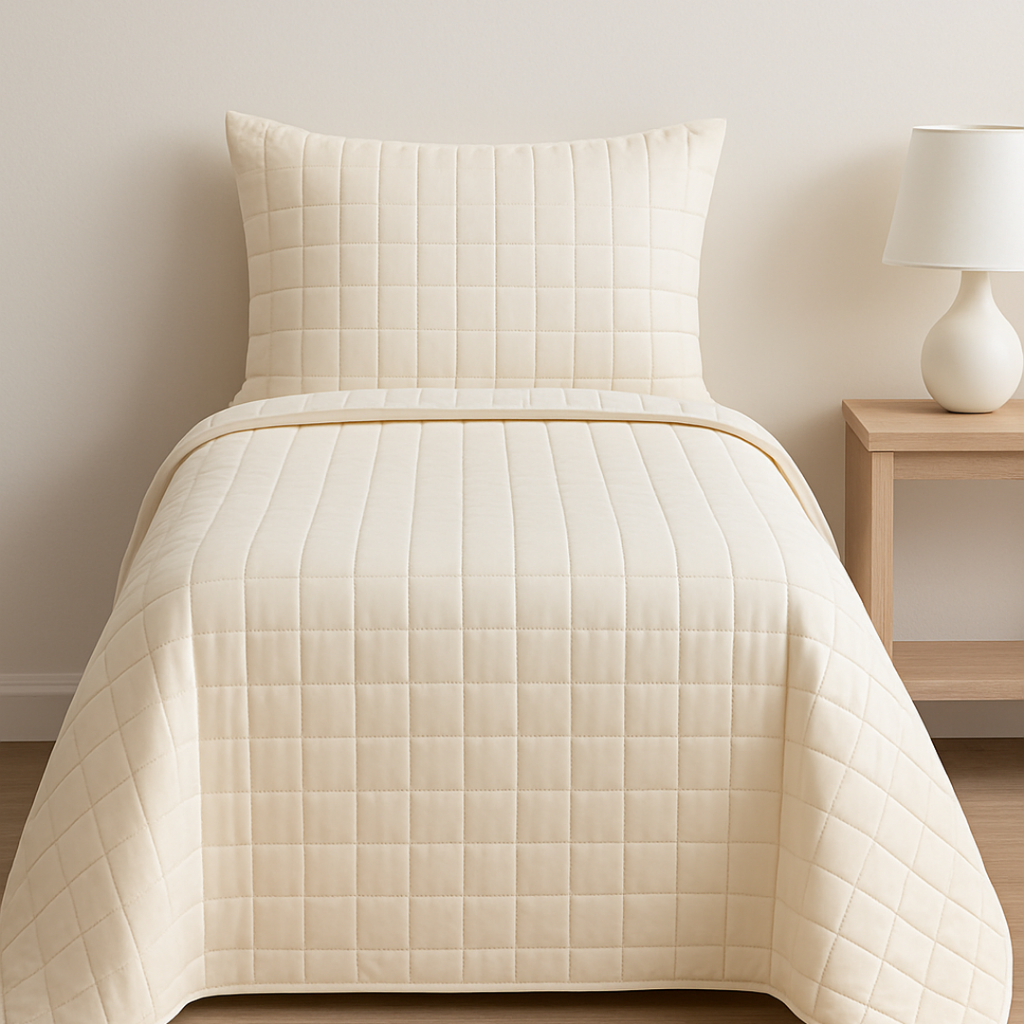 Cobre Leito Luxo Colcha Solteiro com Porta Travesseiro Matelassê Percal 300 fios - Marfim