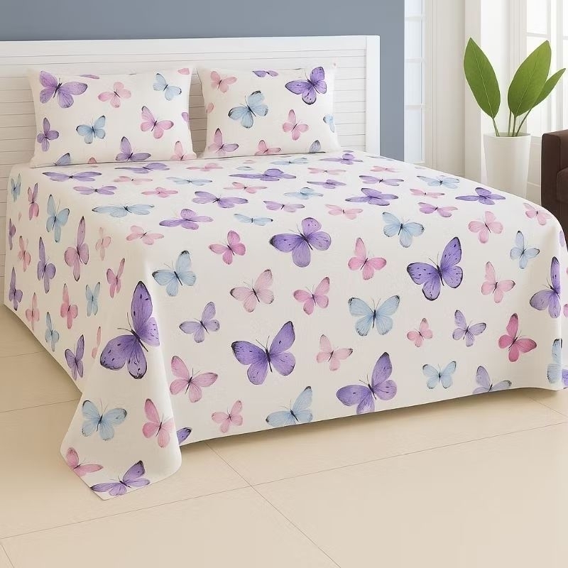 Cobre o Leito Lençol 3 Peças Bella Natureza Super Queen Borboleta SEM Enchimento De Manta 180 fios