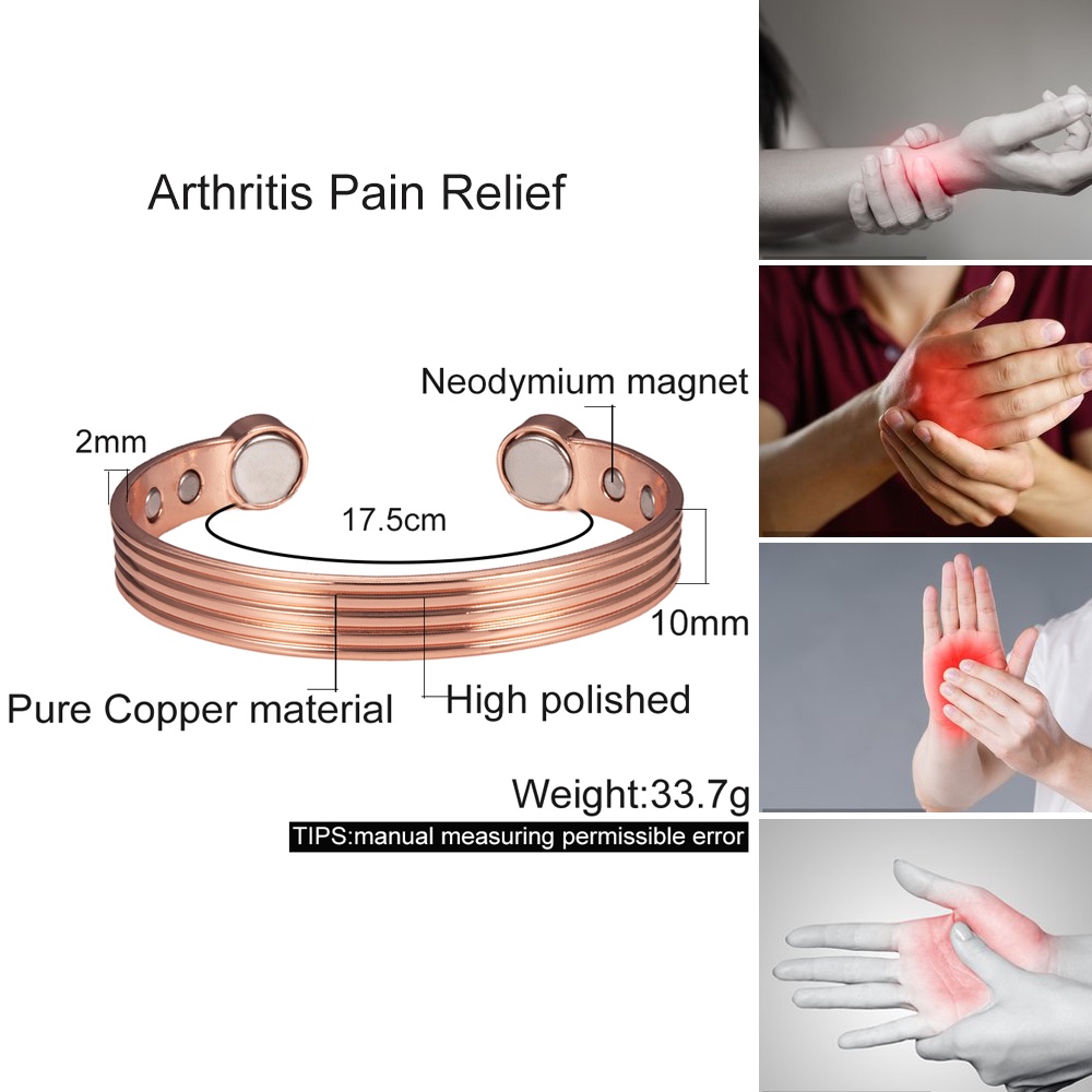 Cobre puro Pulseiras para Homens Mulheres Ajustável Cuff Stripe Pulseiras Arthritis Health High Magnet Cobre Sólido