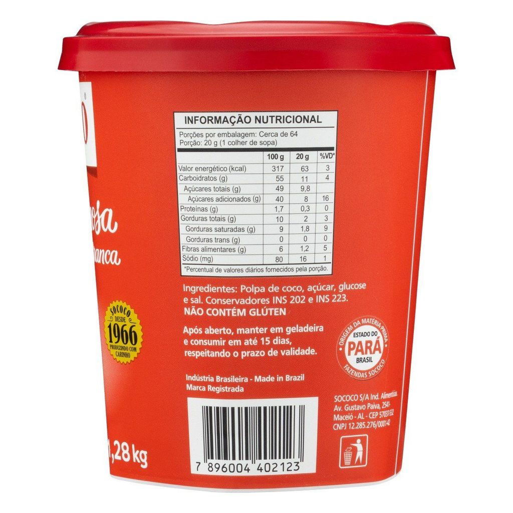 Cocada Doce Cremosa de Coco Branco Sococo 1,28 kg