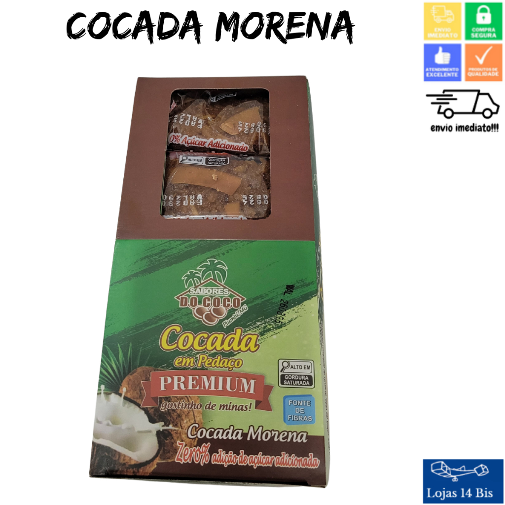 Cocada Morena Artesanal Premium 0% de Adição de Açúcar 15x40g Sabores do Coco