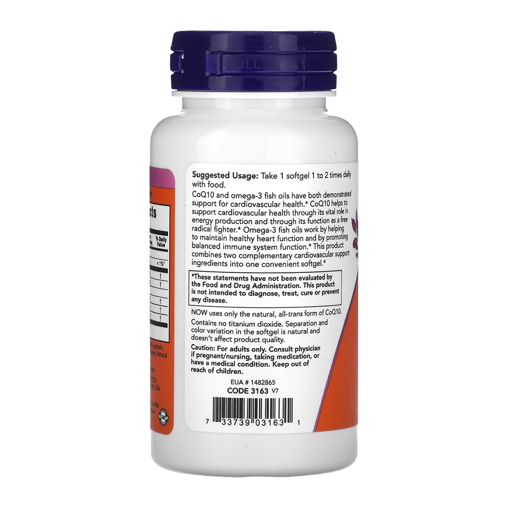 Coenzima CoQ10 60mg e Omega-3 Now Foods 60Soft Importado