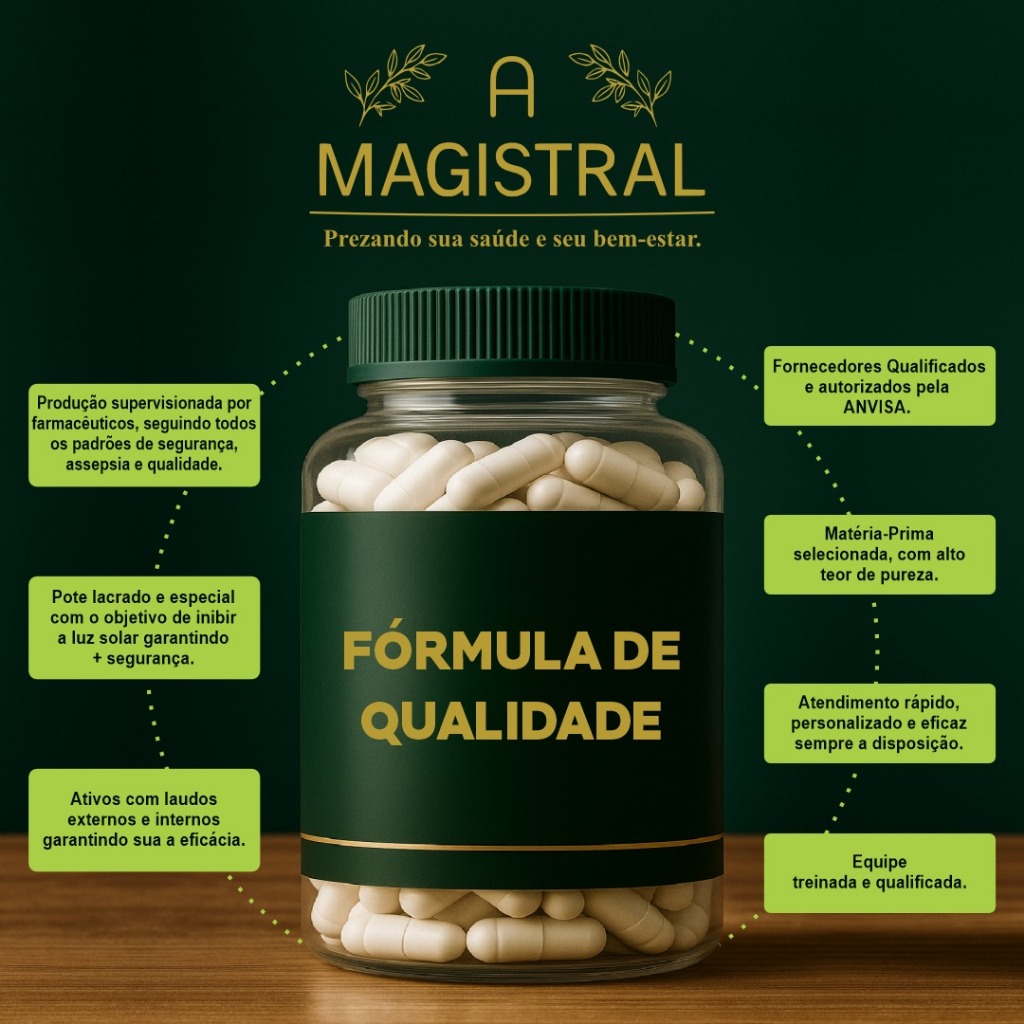 PRODUTO ORIGINAL • PRODUZIDO E VENDIDO POR LOJA OFICIAL A MAGISTRAL GARANTIAS A MAGISTRAL AO COMPRADOR • Aqui, o cliente vem sempre em primeiro lugar • Produto original, bem embalado e lacrado • Ativos com fornecedores certificados pela ANVISA • Envio rápido • Nota fiscal • Atendimento 24 horas, profissional e personalizado via chat • Padrão elevado de cuidado e qualidade em cada detalhe TEM DUVIDA? NÃO HESITE EM NOS PERGUNTAR. PODE CONTAR CONOSCO 24 HORAS. NOSSA EQUIPE ESTÁ SEMPRE A DISPOSIÇÃO! ______________________________________________________ O QUE É A COENZIMA Q10? A Coenzima Q10 é uma substância naturalmente presente no organismo e fundamental para a produção de energia nas células. Sua suplementação é amplamente utilizada como suporte nutricional, especialmente em rotinas voltadas ao metabolismo energético e à proteção celular. PRINCIPAIS BENEFÍCIOS • Auxilia na produção de energia celular • Contribui para a proteção contra o estresse oxidativo • Apoia a saúde celular • Suporte ao metabolismo energético • Utilizada em suplementação nutricional diária SUGESTÃO DE USO Ingerir 1 cápsula ao dia, ou conforme orientação profissional COMPOSIÇÃO • Coenzima Q10 Ubiquinona CoQ10 100mg • Cápsulas: Gelatinosas Sem Sabor • Excipiente Farmacêutico q.s.p 1 cápsula • Validade: 6 meses Farmacêuticos Responsáveis: Dr. Alexandre Dalla Déa Ereno CRF: 20346/SP Dra. Mônica Dala Déa Ereno Rossignoli CRF: 23114/SP SEGURANÇA, REGULARIZAÇÃO, ADVERTÊNCIAS E CONSERVAÇÃO. Produto classificado como Suplemento Alimentar, conforme a legislação sanitária vigente. Produto dispensado de registro, conforme RDC nº 240/2018 – ANVISA. Este produto é isento de prescrição médica, segundo a ANVISA. Este produto não é um medicamento. Não exceder a recomendação diária de consumo indicada na embalagem. Mantenha fora do alcance de crianças. Produto indicado para adultos (≥19 anos). Gestantes, nutrizes e pessoas com condições de saúde específicas devem consultar orientação de profissional de saúde. Em caso de qualquer reação adversa, suspenda o uso e procure orientação profissional. Conservação: Conservar em local fresco, seco e ao abrigo da luz. Manter o frasco bem fechado após o uso.
