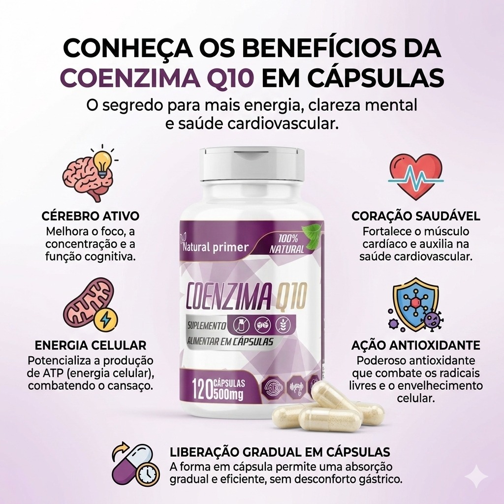ENVIO NO MESMO DIA!! Multiplique sua energia de dentro para fora e proteja a saúde do seu coração com a Coenzima Q10 da Natural Purch! ⚡❤️ A Coenzima Q10 Natural Purch (também conhecida como CoQ10) é um nutriente essencial, presente naturalmente em nossas células, responsável pela produção de energia e proteção contra o envelhecimento precoce. Com o passar da idade, a produção natural dessa coenzima diminui significativamente. Nosso suplemento garante a reposição ideal para você manter a vitalidade, a saúde cardiovascular e o vigor no dia a dia. Principais Benefícios: Explosão de Energia: Atua diretamente nas mitocôndrias, aumentando a produção de energia celular (ATP) e reduzindo a sensação de fadiga. Saúde do Coração: Auxilia na melhora da função cardiovascular e na manutenção de níveis saudáveis de colesterol. Poderoso Antioxidante: Combate os radicais livres, protegendo as células contra o estresse oxidativo e o envelhecimento precoce. Desempenho Físico: Excelente aliado para quem pratica exercícios e busca melhor rendimento e recuperação muscular. Por que escolher a Natural Purch? Nosso compromisso é com a sua saúde e resultados. A Coenzima Q10 da Natural Purch possui formulação de alta pureza e biodisponibilidade, garantindo que o seu organismo absorva o máximo de nutrientes em cada dose. Especificações do Produto: Marca: Natural Purch Apresentação: Frasco com 60 cápsulas (Nota: caso o seu produto seja em comprimidos, basta alterar esta palavra) Rendimento: Até 60 dias de uso (dependendo da indicação de uso) Produto 100% Original e Lacrado. Sugestão de Uso: Recomenda-se a ingestão de 1 (uma) a 2 (duas) cápsulas ao dia, preferencialmente junto com as principais refeições (pois a absorção é melhor com fontes de gordura), ou conforme orientação do seu médico/nutricionista. ⚠️ Avisos Importantes (De acordo com a Anvisa e Shopee): Este produto não é um medicamento. Não exceder a recomendação diária de consumo indicada na embalagem. Mantenha fora do alcance de crianças. Produto dispensado de registro conforme RDC 240/2018. 📦 Envio Rápido e Seguro! Trabalhamos com estoque a pronta entrega. Assim que o pagamento for confirmado, seu pedido será preparado com total segurança e despachado o mais rápido possível.