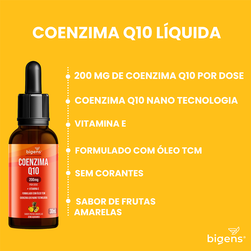 Coenzima Q10 200mg Em Gotas Formulada Em Óleo Tcm + Vitamina E, Sabor Frutas Amarelas | Bigens