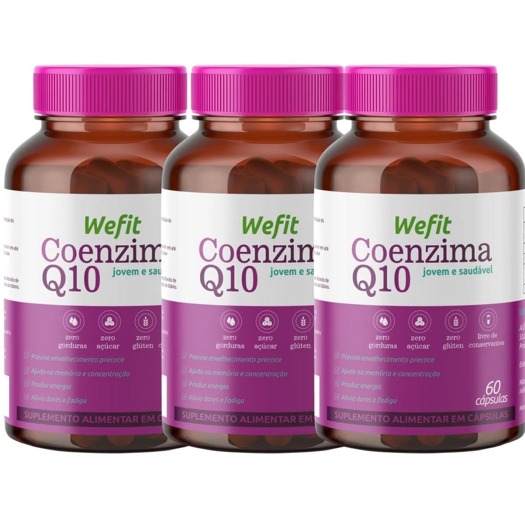 Sobre o Produto: A Coenzima Q10 WeFit é um suplemento alimentar desenvolvido para auxiliar na produção de energia celular e no combate aos radicais livres. Essencial para o funcionamento das mitocôndrias – responsáveis pela geração de energia nas células – a CoQ10 tem ação antioxidante, ajudando a prevenir o envelhecimento precoce e melhorar a saúde cardiovascular. Também pode contribuir para a redução de dores musculares, aumento da disposição física e melhora da memória e concentração. Ideal para adultos que buscam mais vitalidade e proteção celular no dia a dia. Como Consumir: Ingerir 2 cápsulas ao dia, preferencialmente junto a uma das principais refeições, ou conforme recomendação médica ou de nutricionista. Benefícios: - Auxilia na produção de energia celular - Reduz a fadiga e o cansaço físico - Possui ação antioxidante, ajudando a prevenir o envelhecimento precoce - Contribui para a melhora da memória e concentração - Pode aliviar dores musculares causadas por esforço físico ou deficiência energética - Suporte à saúde cardiovascular Alergênicos: - Pode conter derivados de leite, soja, ovos e amendoim - Não contém glúten Ingredientes: - Coenzima Q10, agente de massa: amido, antiumectante: dióxido de silício - Composição da cápsula: gelatina e corante dióxido de titânio Advertências: - Produto indicado para adultos com idade igual ou superior a 19 anos - Este produto não é um medicamento - Não exceder a recomendação diária de consumo indicada na embalagem - Mantenha fora do alcance de crianças - Não deve ser consumido por gestantes, lactantes, crianças e pessoas que realizam atividades que exigem atenção constante - Pessoas com doenças preexistentes ou em uso de medicamentos devem consultar um profissional de saúde antes do consumo Conclusão: A Coenzima Q10 WeFit é um suplemento completo para quem busca mais energia, bem-estar e proteção antioxidante. Com uma fórmula eficaz, atua diretamente -no metabolismo energético, auxiliando na disposição física e mental, além de oferecer benefícios para a saúde cardiovascular e proteção contra o envelhecimento precoce. Uma excelente escolha para incluir na rotina de cuidados com a saúde e qualidade de vida.