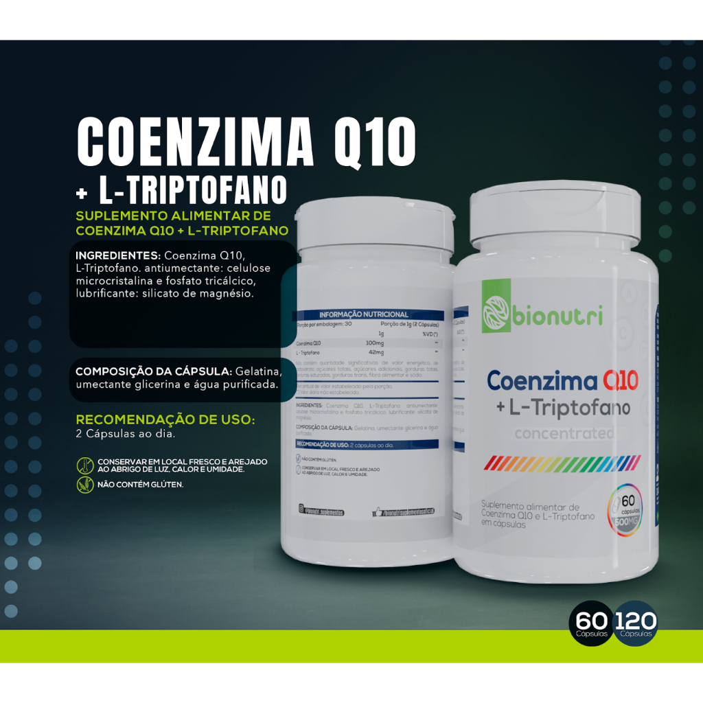 CoenzimaQ10 com Ltriptofano Ubiquinol (120 cápsulas) - Bionutri